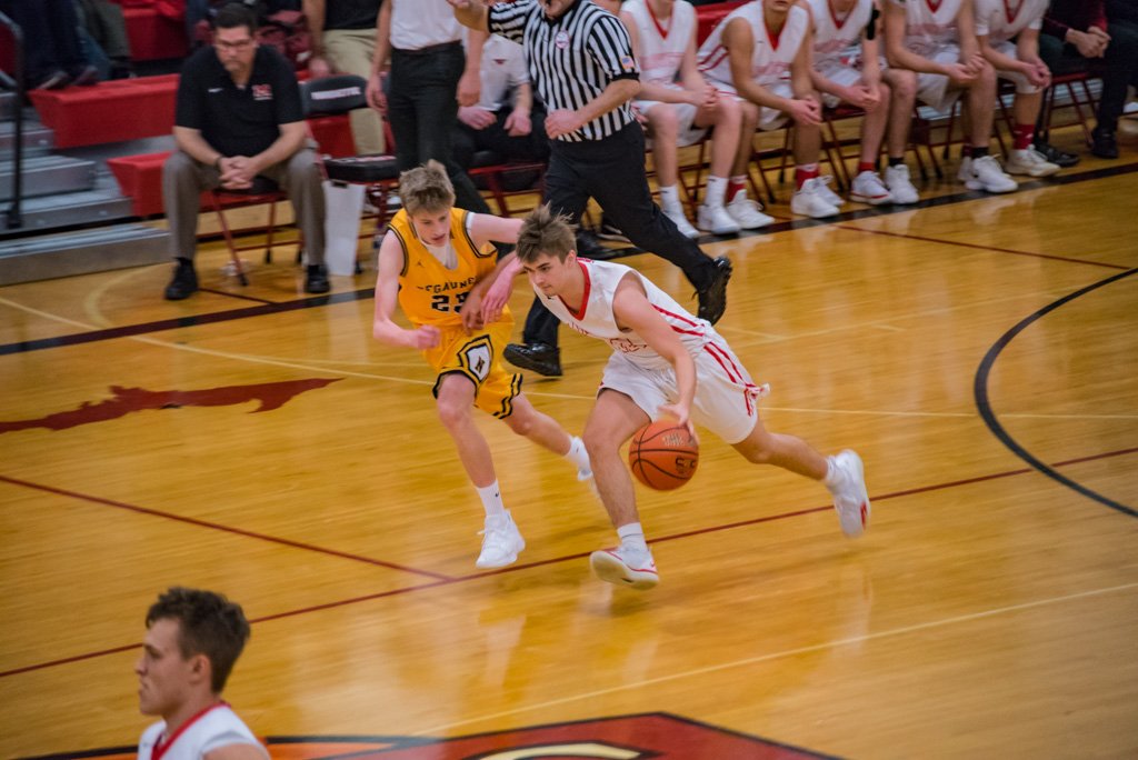 The Redmen move down the court into the Negaunee zone.