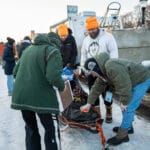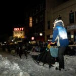 The start of the UP200, Midnight Run, and JackPine 30, long held in the heart of Marquette’s Downtown, kicked off on Friday evening with hundreds gathered to greet the mushers and cheer them on out of the gates! MediaBrews very own Walt Lindala was on hand as the races Master of Ceremonies, ushering in the start of the race and introducing the honorary speakers, which included many awesome Michiganders like UP200 President Ross Anthony, MI State Rep Karl Bohnak, Marquette Downtown Development Authority Executive Director Tara Laase-McKinney, Vice President of Pure Michigan Kelly Wolgamott, and NMU President Chris Olsen to name a few! The festivities officially started at 6:30pm after an afternoon of prepping Washington street and community members mingling with the teams, as spectators found their spots and the starting line was cleared, the Marquette Mens Chorus sang the national anthems of Canada and the USA as the flags were presented, followed by short speeches from the guest speakers about the history of the event, its importance to the community and sport, and how it reflects just how special Marquette is.