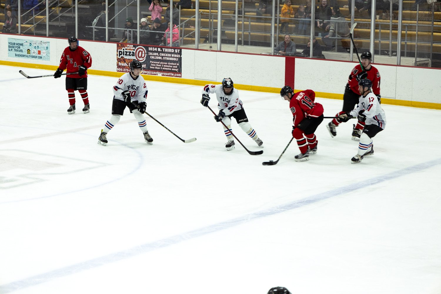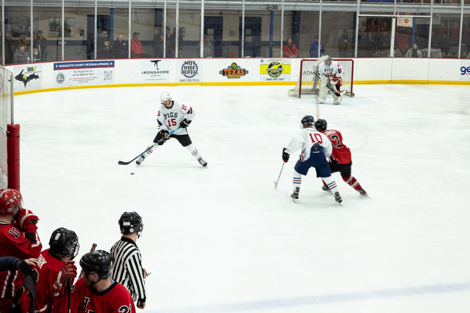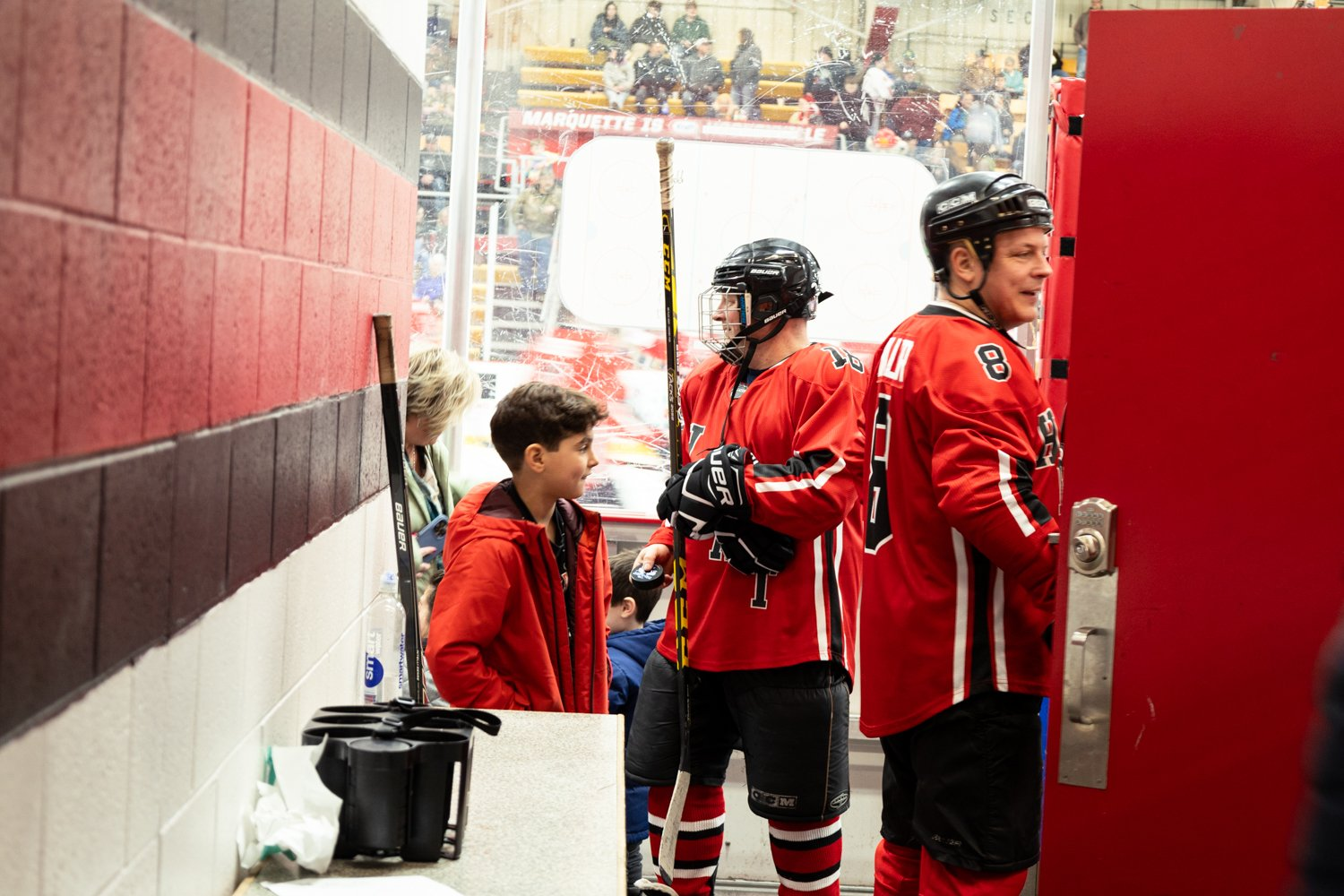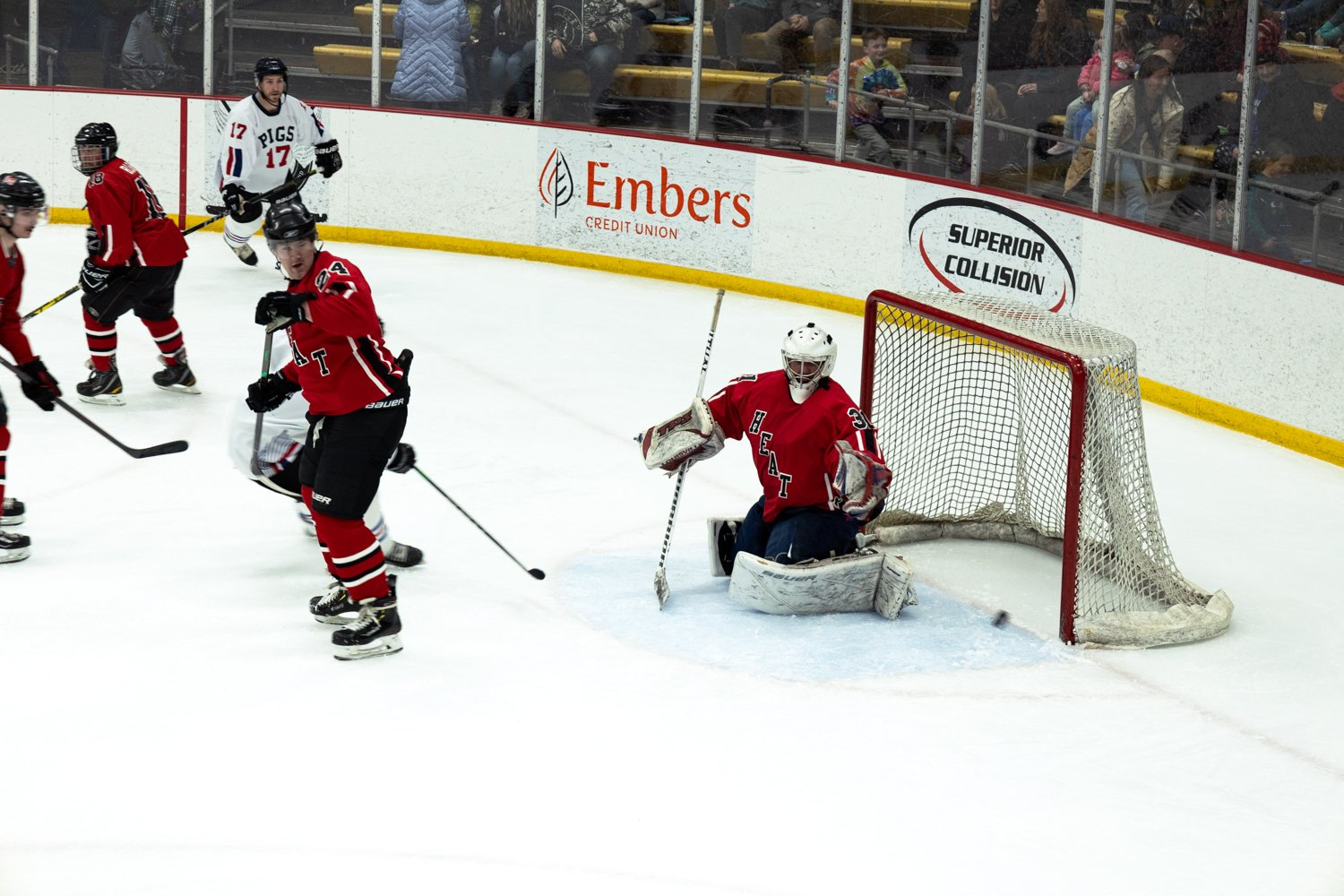 What first began when Marquette City Police Officer Larry Grimsby, Michigan State Trooper Dave Rotteman, and Marquette City Firefighter Dan Dagenais wanted to raise money to assist a family with three young children whose home had just been lost to a fire. Flash forward 40 years; today the Pigs-N-Heat Charity hockey game draws between 2,500–3,000 people and raises approximately $15,000 to $20,000. While there is a trophy to play for and a bit of an established rivalry, this friendly game is also a way to honor and celebrate both Firefighter and Policeman of the year.