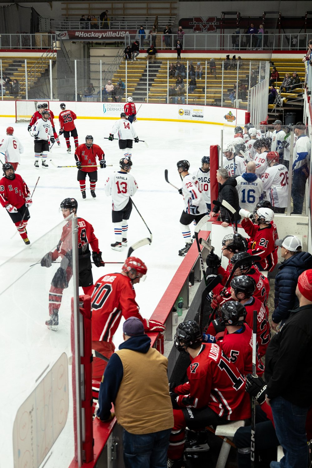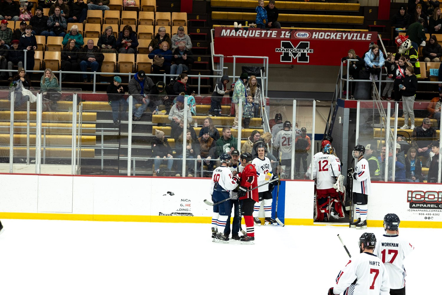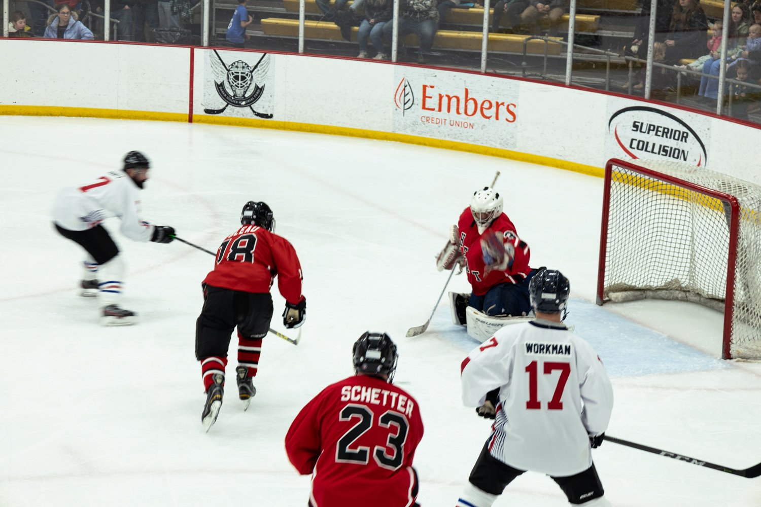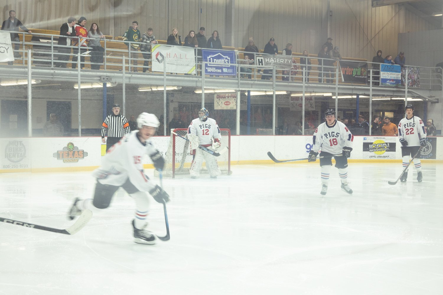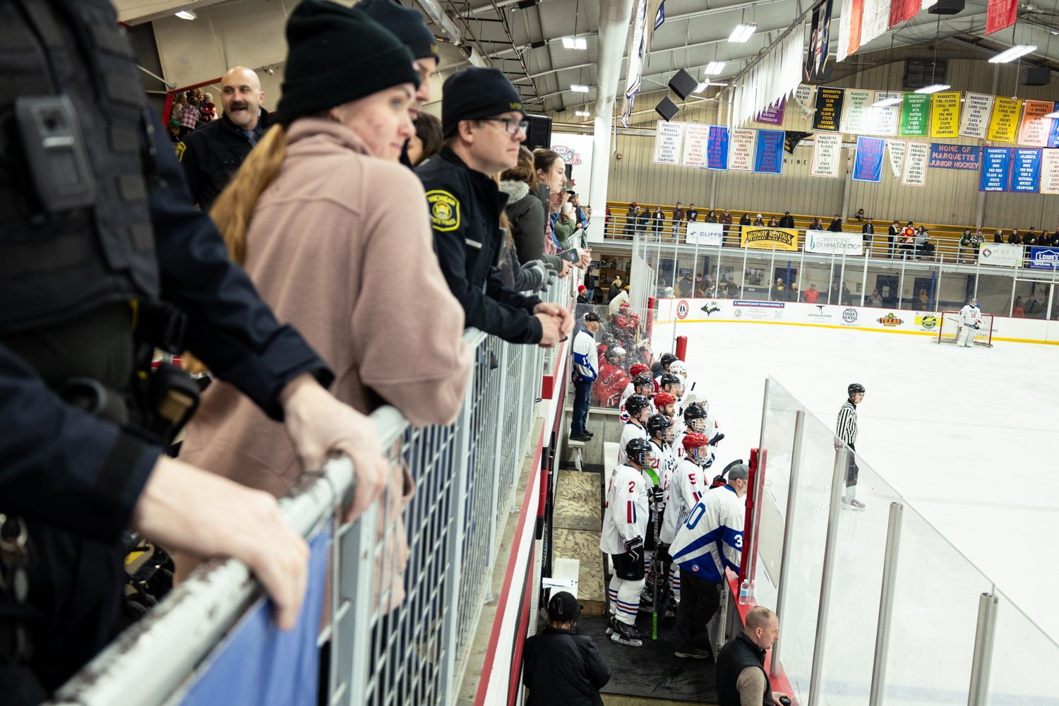 What first began when Marquette City Police Officer Larry Grimsby, Michigan State Trooper Dave Rotteman, and Marquette City Firefighter Dan Dagenais wanted to raise money to assist a family with three young children whose home had just been lost to a fire. Flash forward 40 years; today the Pigs-N-Heat Charity hockey game draws between 2,500–3,000 people and raises approximately $15,000 to $20,000. While there is a trophy to play for and a bit of an established rivalry, this friendly game is also a way to honor and celebrate both Firefighter and Policeman of the year.