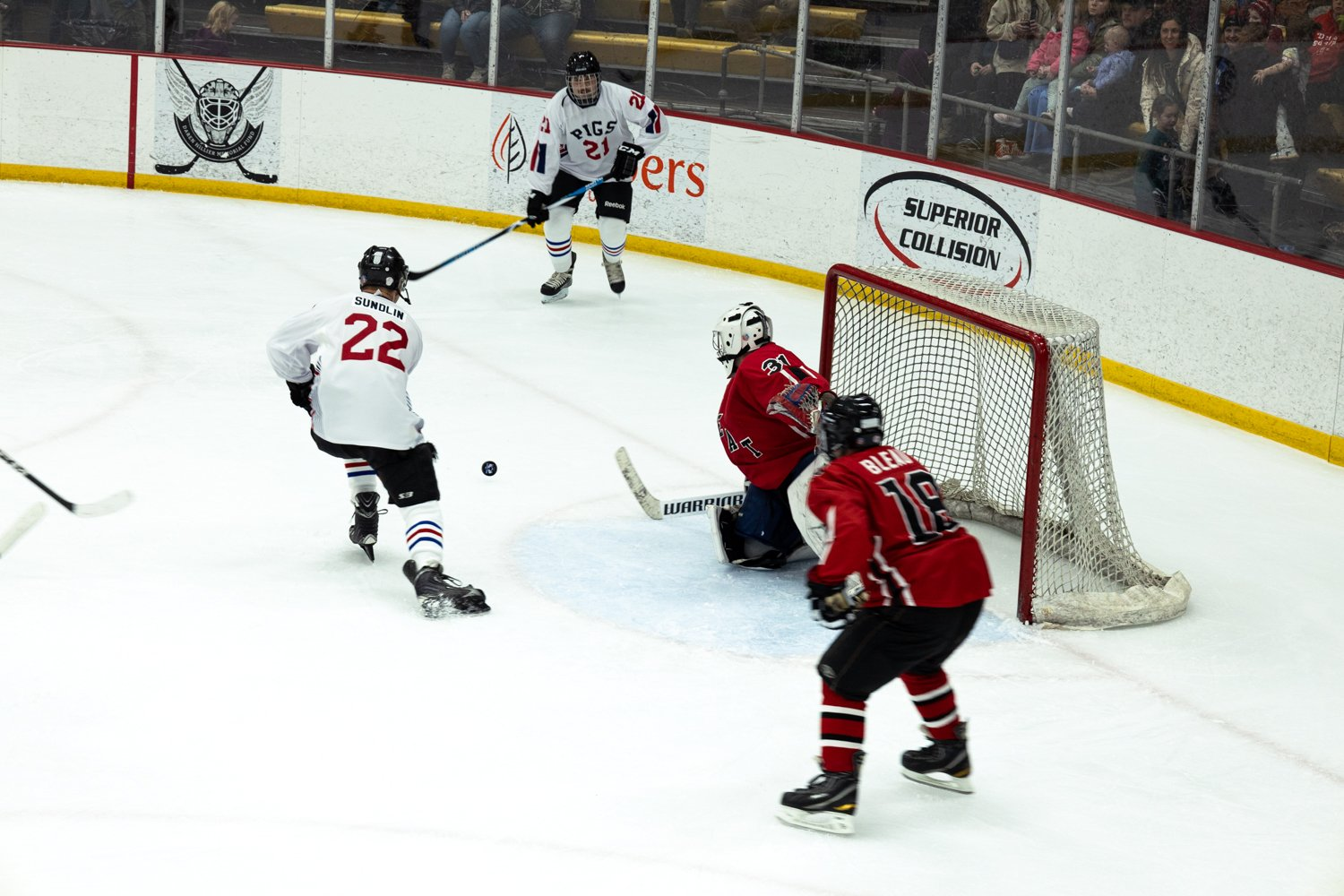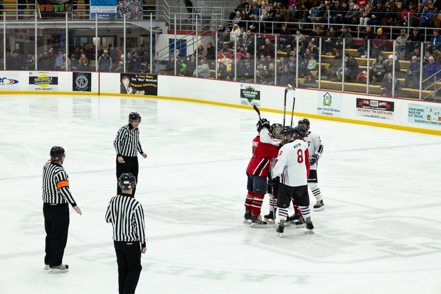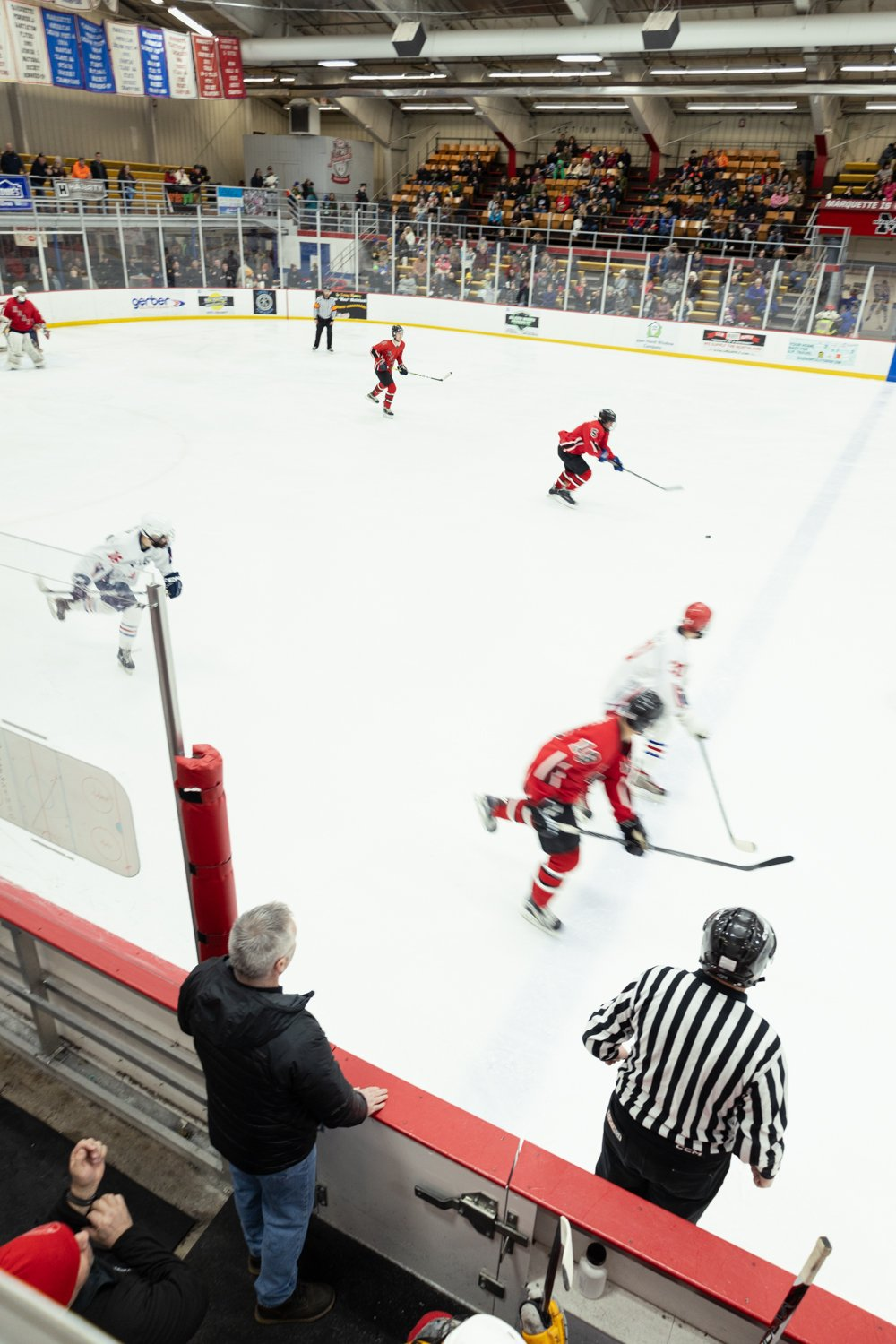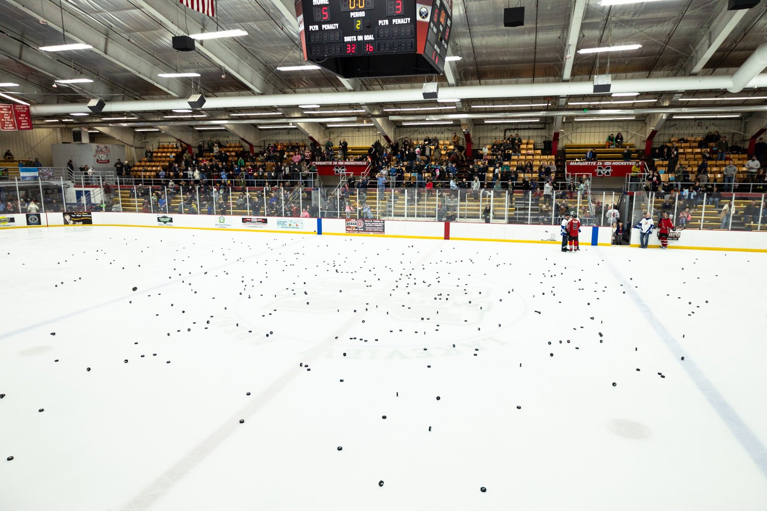 What first began when Marquette City Police Officer Larry Grimsby, Michigan State Trooper Dave Rotteman, and Marquette City Firefighter Dan Dagenais wanted to raise money to assist a family with three young children whose home had just been lost to a fire. Flash forward 40 years; today the Pigs-N-Heat Charity hockey game draws between 2,500–3,000 people and raises approximately $15,000 to $20,000. While there is a trophy to play for and a bit of an established rivalry, this friendly game is also a way to honor and celebrate both Firefighter and Policeman of the year.