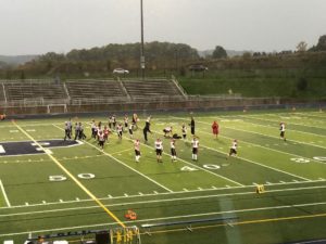 The Redmen warm up ahead of their bout against the Northmen.