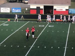 The Redmen, in the home reds, prepare to take on the Trojans.